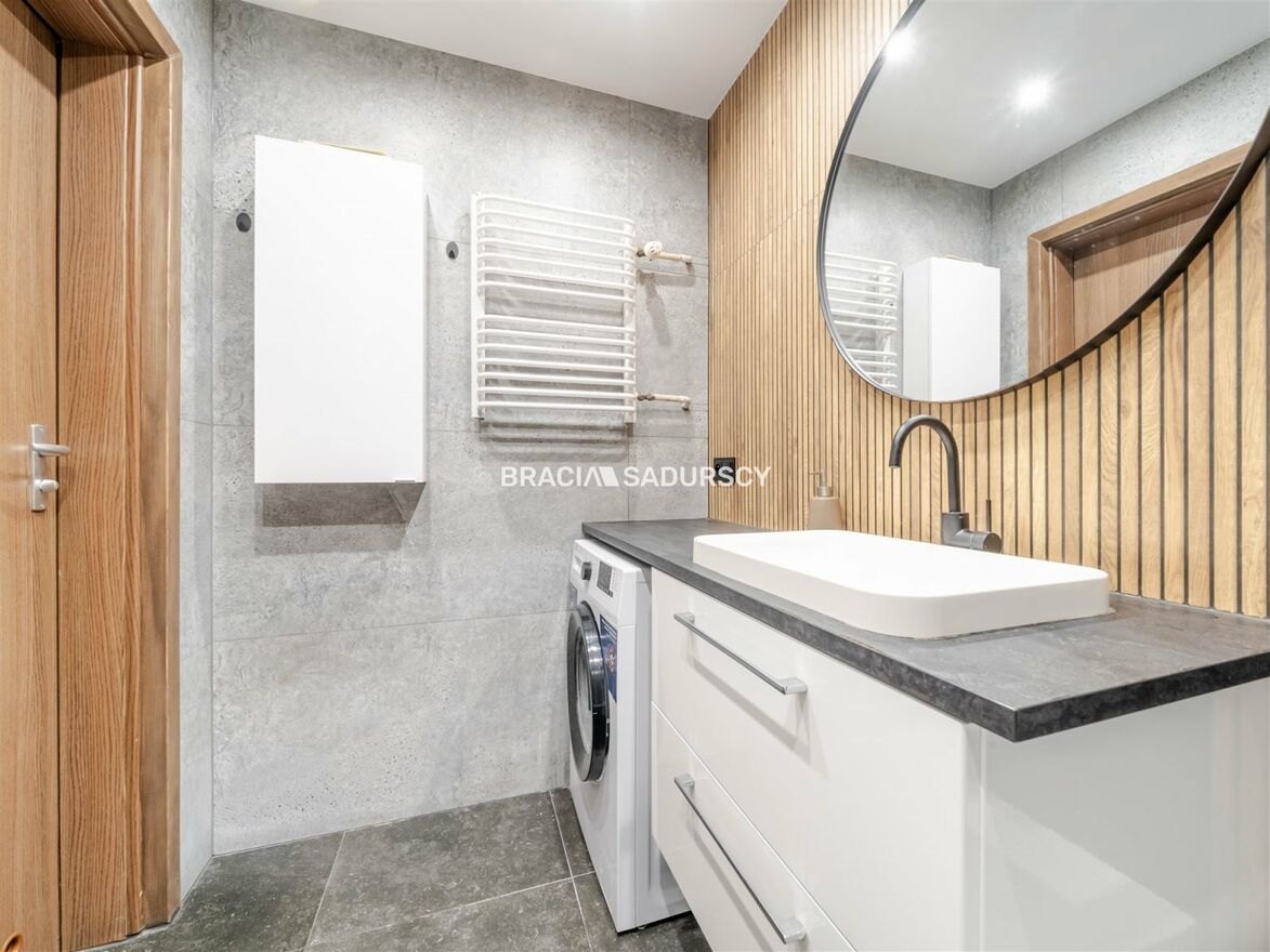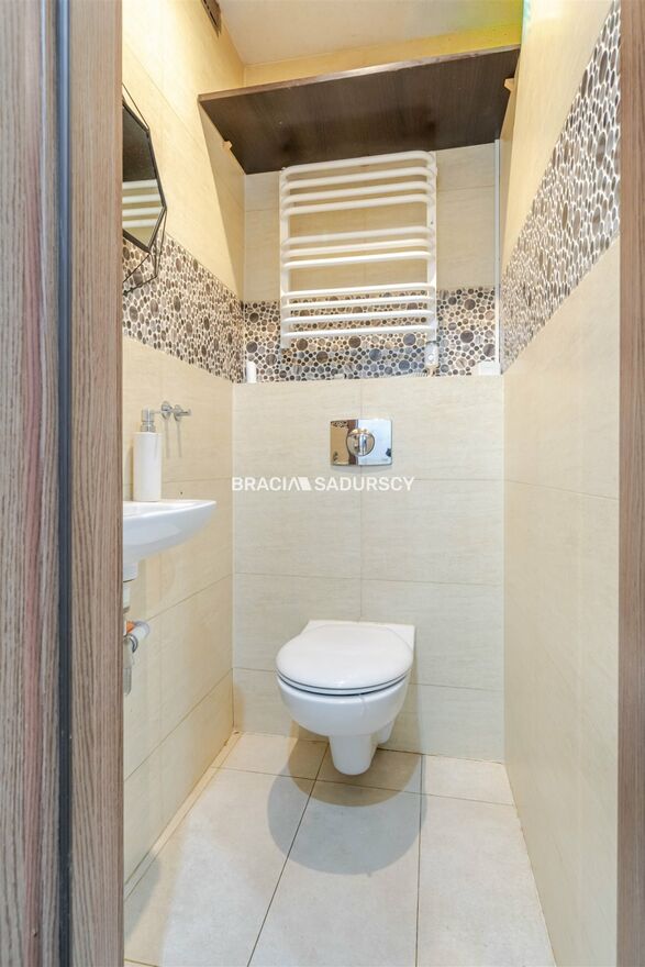 Mieszkanie położone jest w jednej z najbardziej wygodnych części Dobczyc, w sąsiedztwie pełnej infrastruktury. W odległości krótkiego spaceru znajdują się szkoła i przedszkole, sklepy, plac zabaw, tereny zielone, przystanek autobusowy oraz centrum miasta. Do obwodnicy można dojechać w zaledwie minutę. To cicha, spokojna okolica, dobrze skomunikowana z Krakowem i Myślenicami.